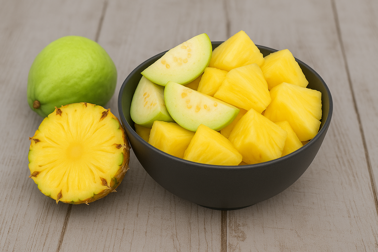 A refreshing fusion of tropical pineapple and nutrient-rich guava, served fresh in a 300 g bowl. The tangy sweetness of pineapple blends perfectly with the mellow flavor of guava, creating a deliciously healthy treat.