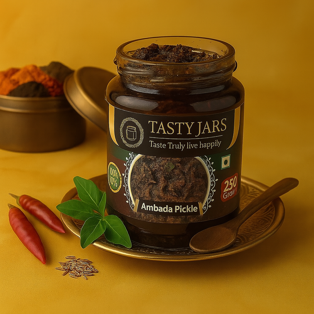 Relish the bold, tangy zest of Tasty Jars Ambada Leaves Pickle—a South Indian delicacy that brings tradition to your table!