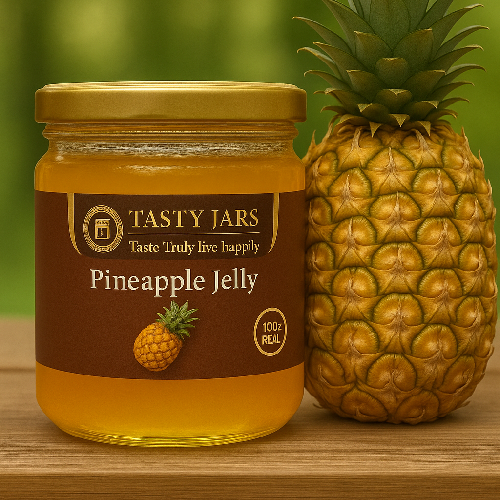 Brighten your day with Tasty Jars Pineapple Jelly, a vibrant spread that encapsulates the juicy essence of ripe pineapples. Each mason jar is filled with a silky, translucent jelly, made from fresh pineapple juice, cane sugar, and a touch of lemon juice for a perfectly balanced sweet-tart profile. Ideal for breakfast, desserts, or gifting, this jelly delivers a tropical burst in a convenient, single-serve package, perfect for enhancing any meal or snack.